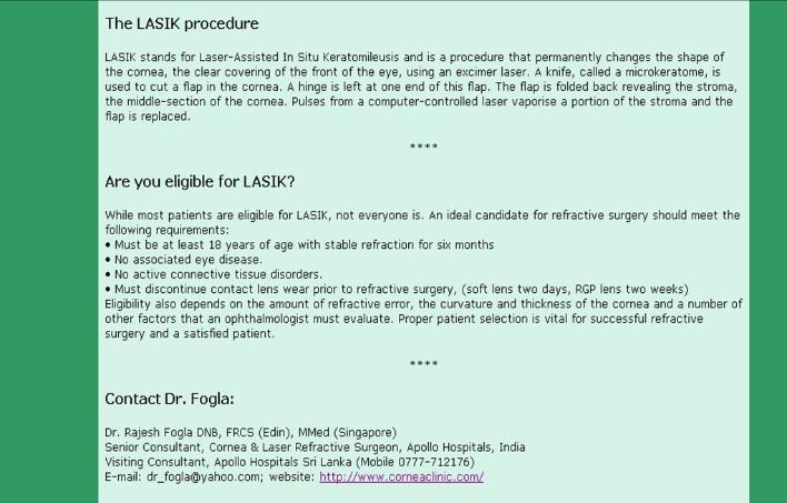| Cornea Clinic - Eye Department - Apollo Hospitals, Jubilee Hills, Hyderabad 500 033, A P, INDIA |
