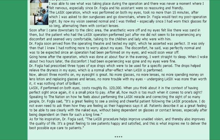 | Cornea Clinic - toll free number 1600 345 1066, other numbers 91 40 23608333 / 23548888 / 23606655 |
